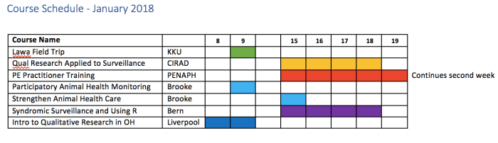 • Introduction to Participatory Epidemiology and Surveillance, 10 day course, Jan 15-19, 22-26, PENAPH